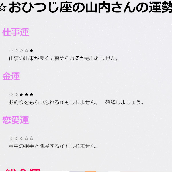 HTML・PHPを用いて12星座ごとに運勢やラッキーアイテムを表示させるサイト。